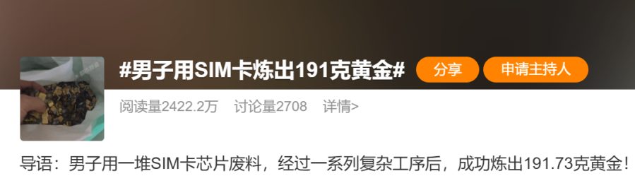 SIM卡炼出近200克黄金?真相是这样的