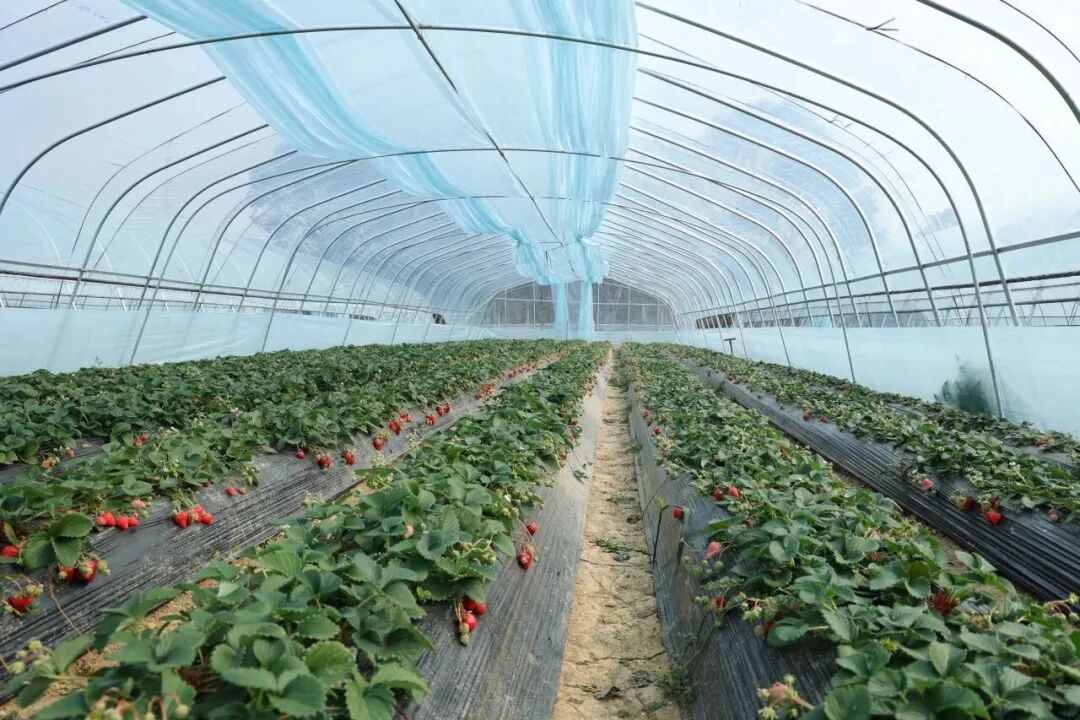 这里像一座现代“草莓实验室”,一期六十余亩的智能大棚里,藏着果实生长的智慧密码。