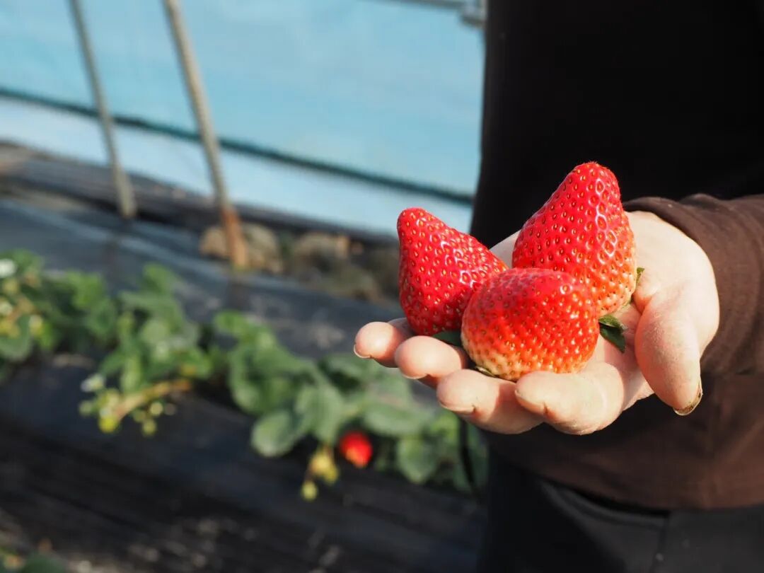 每年冬天,不少游客慕名而来,亲手采摘一篮安心香甜的有机草莓,一口一个,满足不已。
