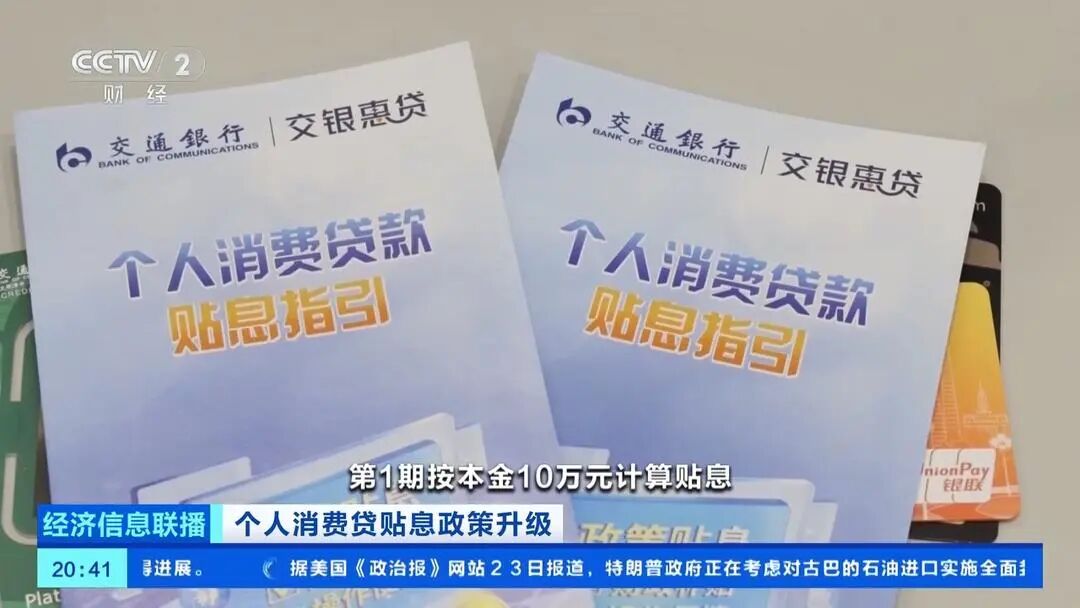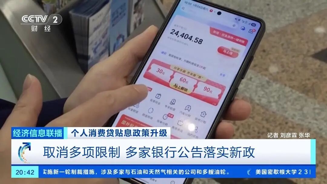 总台央视记者刘彦霖介绍,此次新政策相比2023年9月开始实施的个人消费贷款贴息政策,在多个方面进行了优化升级,其中包括将政策实施期限延长至2026年年底,同时把信用卡分期业务纳入贴息范围。近期,多家银行已发布公告,表示将落实政策优化相关服务。
