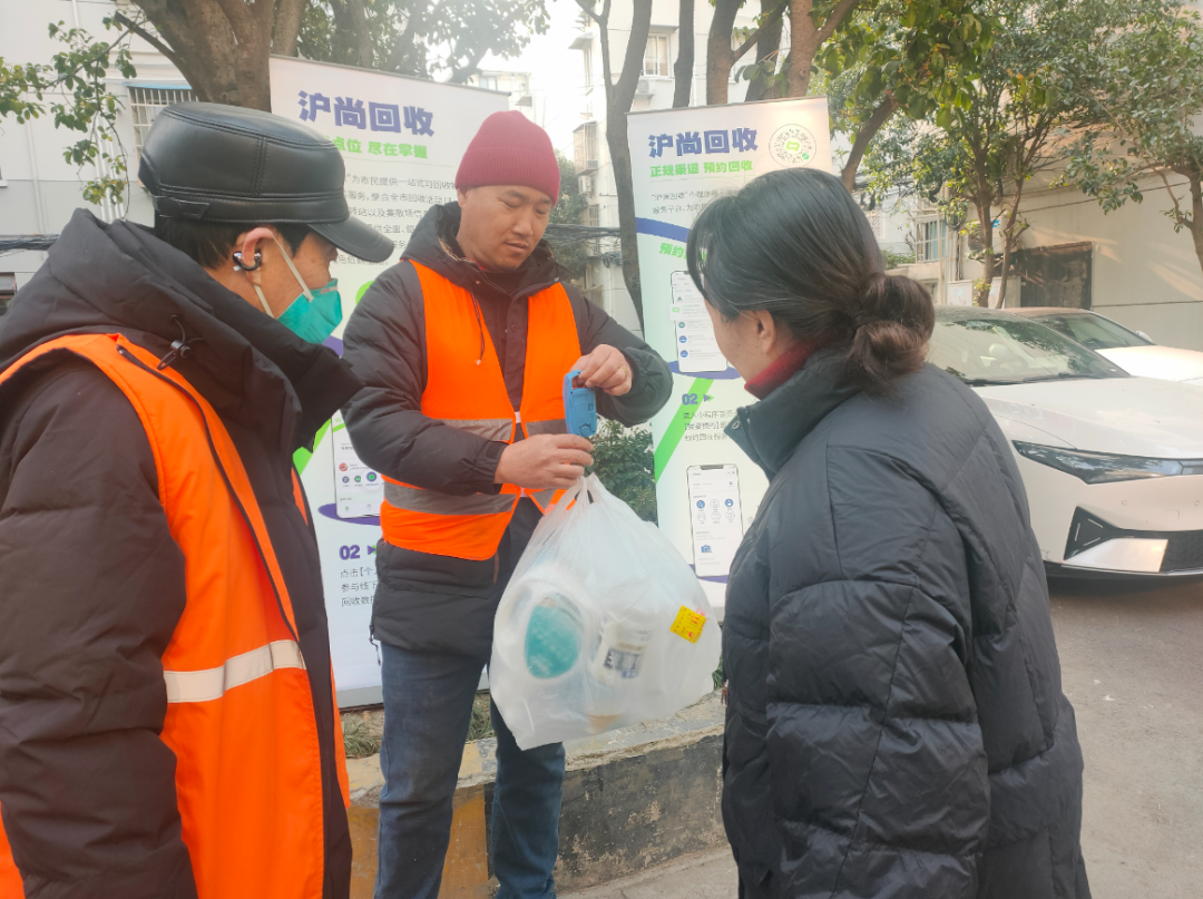 同时,服务点还设立政策咨询处,工作人员向居民详细介绍“沪尚回收”服务流程,并指导使用线上预约功能,帮助居民熟练掌握“一键预约、上门回收”的智慧服务模式,进一步提升回收便利性和居民满意度。