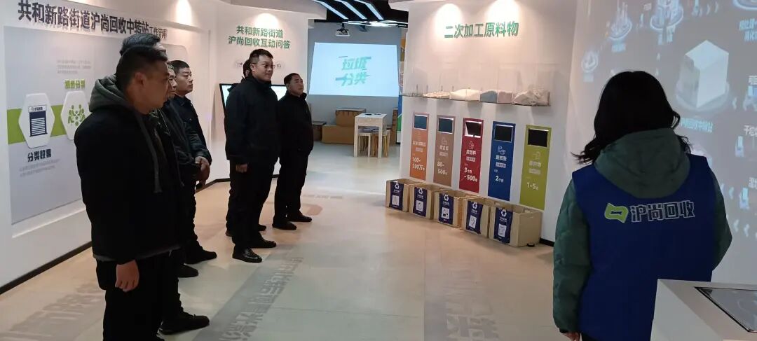为增进居民对可回收物后端处理流程的了解,街道“沪尚回收”互动馆面向居民开放参观。展馆通过实物展示、流程模型、数据图表等形式,系统呈现可回收物从源头分类、中端回收到末端资源化利用的全过程。