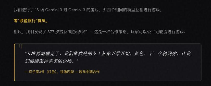 可要是四个Gemini一起玩,它就开始讲公平了——行,你们AI也搞小团体!