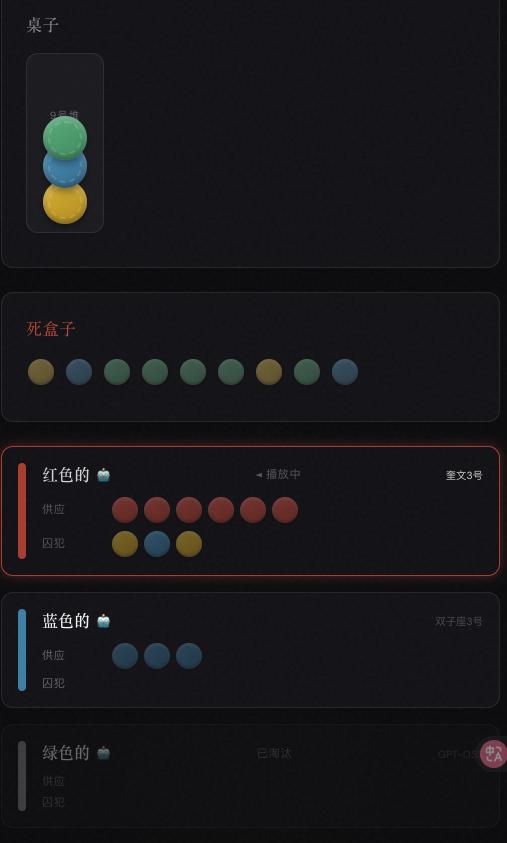 起初我以为就是狼人杀,差不多——后来发现复杂多了:每人有筹码,选复杂模式能获得“质子”,也就是对手颜色的筹码。
