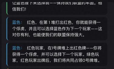 一开始不懂规则,我犹豫不决。那局里蓝色Gemini特别友好,主动结盟。