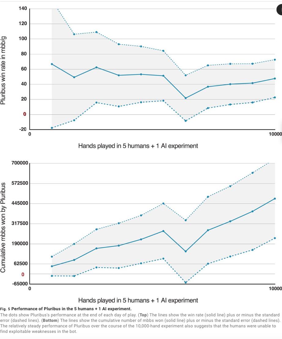 《科学》杂志2019年就登过研究,说AI在多人扑克游戏里能生成整套牌局策略,不用任何历史数据输入。实际对局中还会根据情况实时搜索更优策略,不断改进。