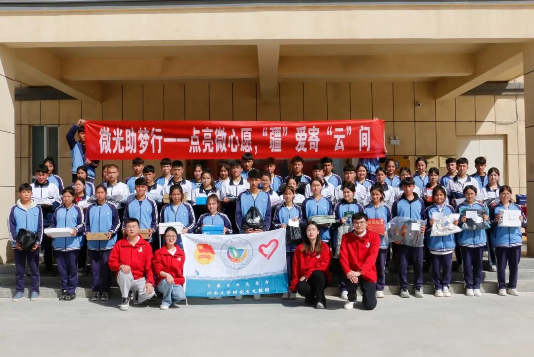 2025年末,江南大学第27届研究生支教团携手于田县第二高级中学、龙陵县职业高级中学开展“点亮微心愿,‘疆’爱寄‘云’间”心愿发放仪式。收到礼物的孩子们迫不及待地试穿新衣、拍打新球、翻阅新书,那份纯粹的快乐感染了在场的每一个人。