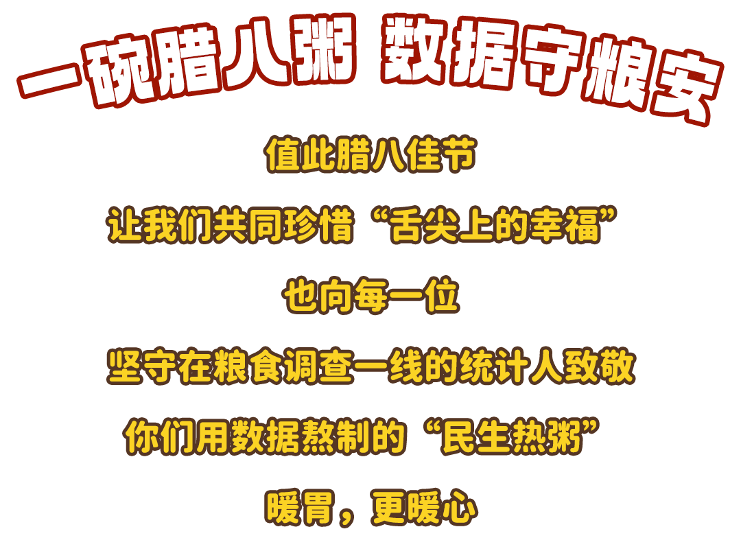 每年农历十二月初八,一碗热气腾腾的腊八粥,是中国人迎接新年的温暖序曲。这碗看似普通的粥品,在统计人眼里,更是一组组鲜活的粮食数据在“咕嘟”沸腾。稻米的醇厚、玉米的香甜、豆类的软糯、杂粮的韧劲……藏的是国家粮食安全的“统计密码”。