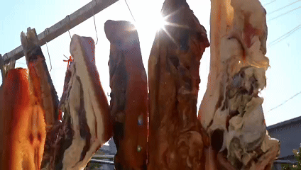 屋檐下,腊鱼腊肉悬挂出饱满的丰收曲线