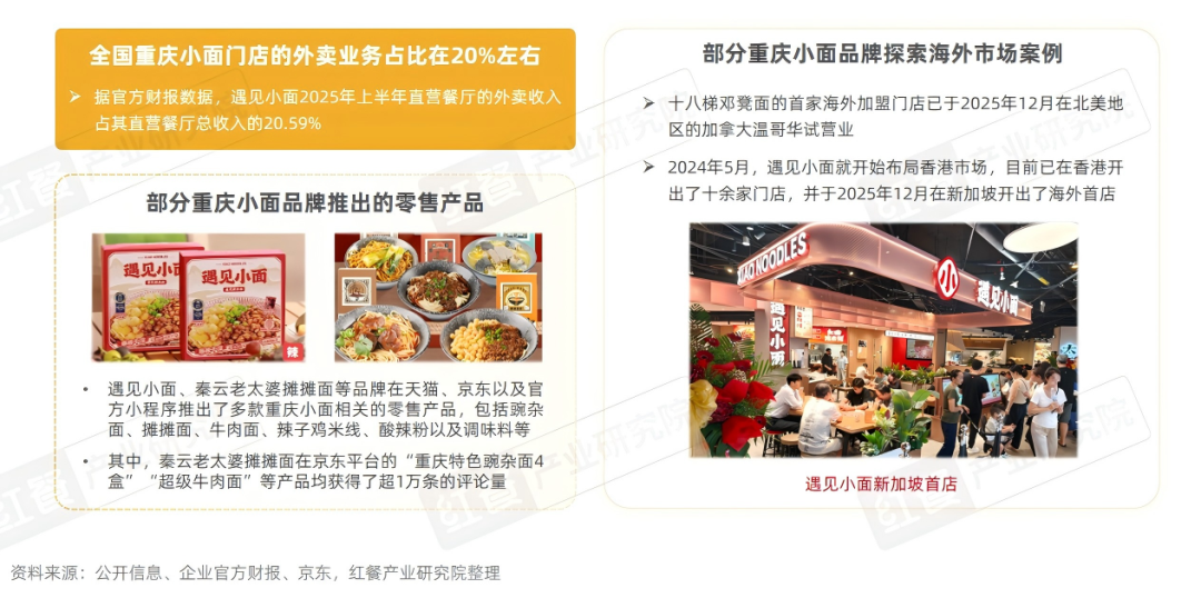部分品牌探索海外市场:十八梯邓凳面2025年12月在加拿大开首家海外加盟店;遇见小面在香港布局十余家门店,2025年12月在新加坡开海外首店。