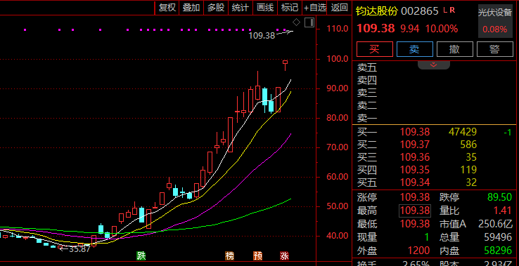 光伏概念股延续涨势,钧达股份实现三连板,协鑫集成、双良节能、东方日升等涨幅居前。