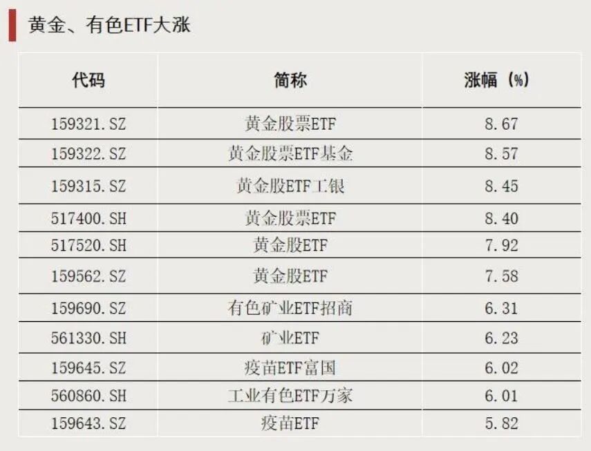 有色ETF大幅上涨