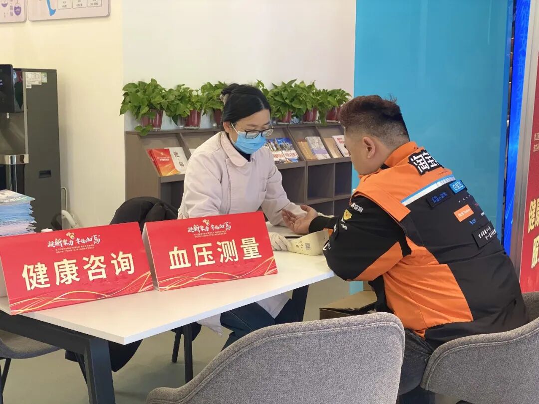 温暖的传递离不开社会各界的支持。活动为新桥镇社区食堂、赶早食集、申阿婆等爱心商户代表授牌,感谢他们为骑手提供专属折扣、休息区等暖心服务。现场的暖“新”服务活动区十分热闹,健康检测等服务就像冬日里的暖阳,照进新就业群体的心里。“现在镇上建了很多驿站,可以喝热水、充电、量血压,还经常备有藿香正气水,非常实用。”宋雷雷说,自己来松江奋斗十二年,见证了新桥镇的发展,通过参与助餐、平安建设等活动,对这片土地有了更深的归属感。