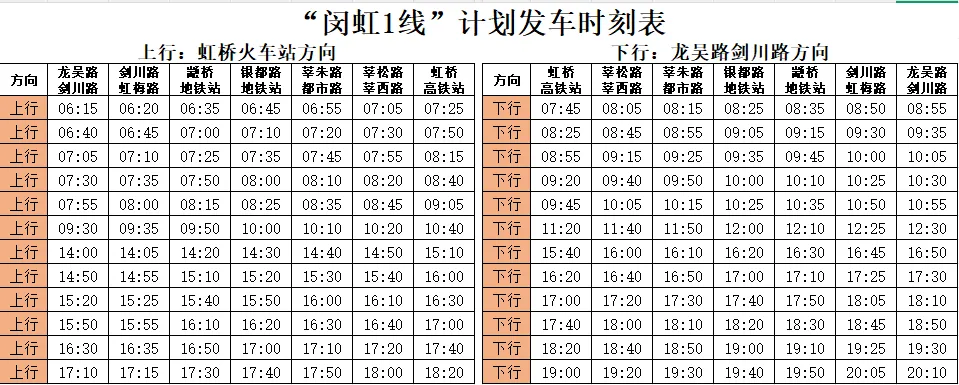 调整后的闵虹一线,工作日与周末的运营班次均适当减少。其中,06:15—09:30、14:00—19:00的核心运营时段会保留基础运力,确保居民通勤出行;平峰时段的发车间隔将相应延长。市民可通过闵虹定制专线APP、站点公示牌查询具体发车时刻,或致电021-34712268咨询。
