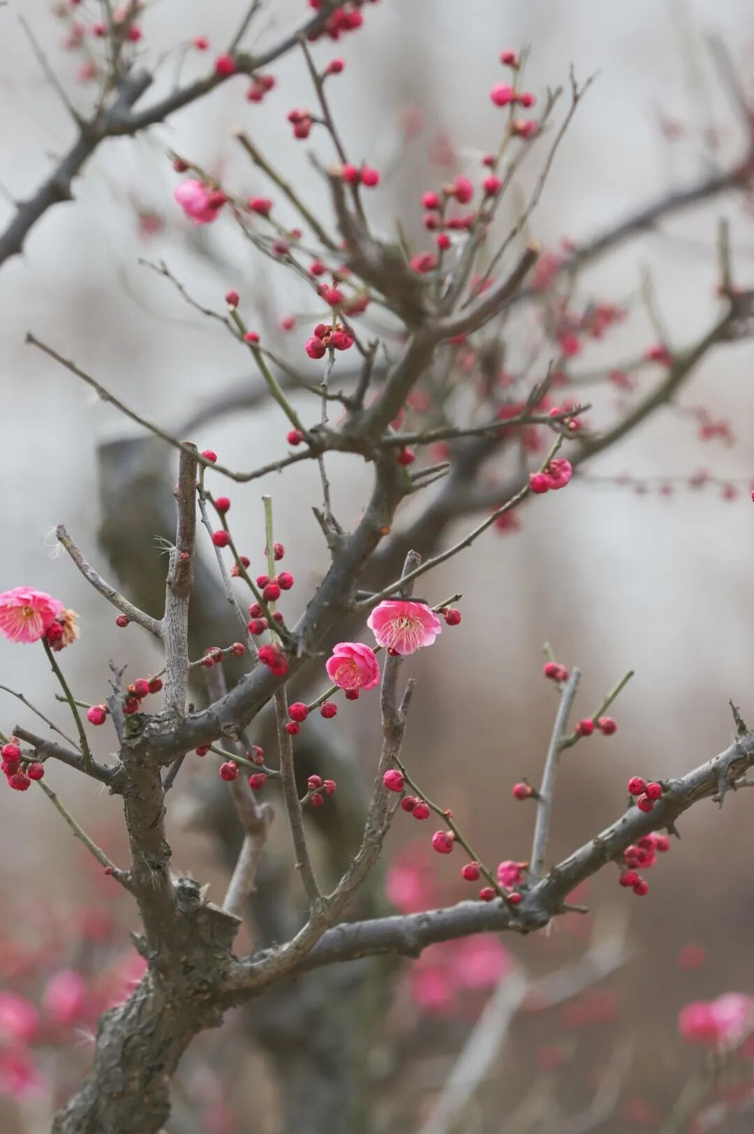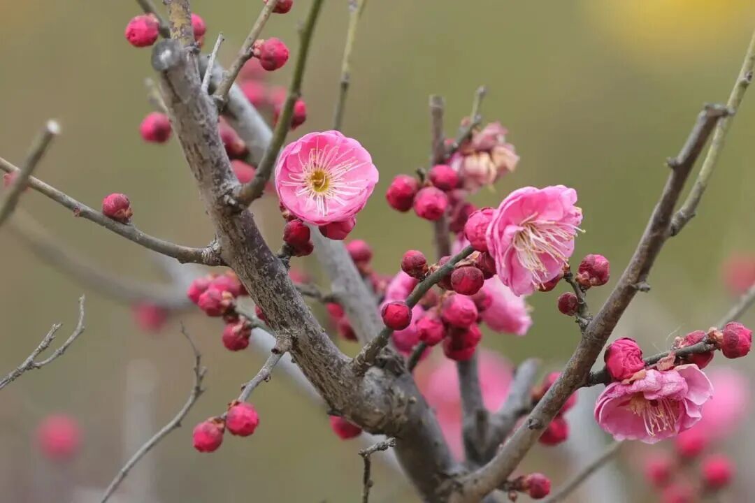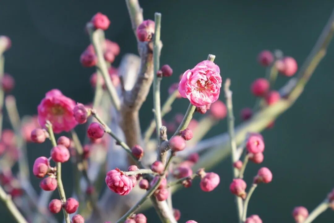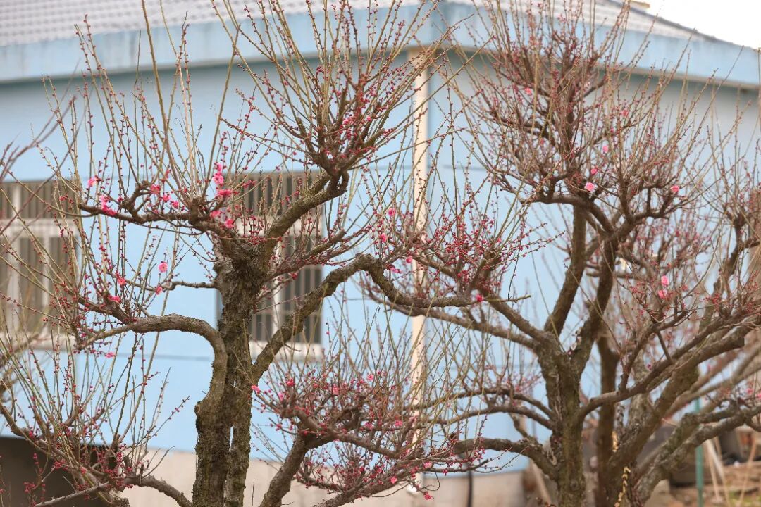 冬日里的娇艳亮色:外冈红梅悄然绽放