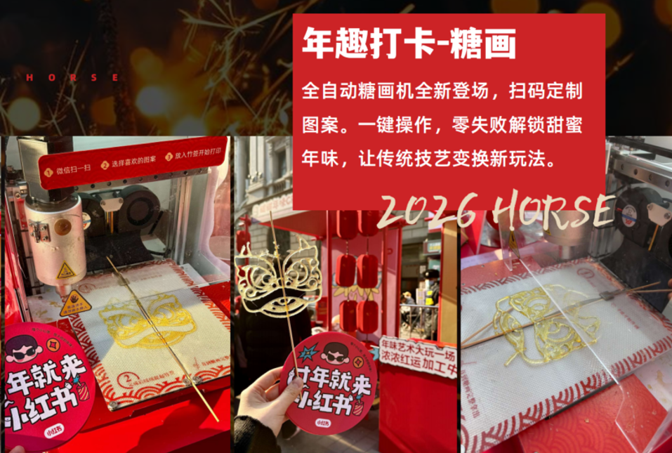 书法家现场挥毫写春联,笔墨飘香送祝福!还有趣味红包拓印体验,亲手制作专属新春红包;糖画体验,重拾童年甜蜜记忆,把甜甜的福气带回家~领取规则等你到现场解锁!