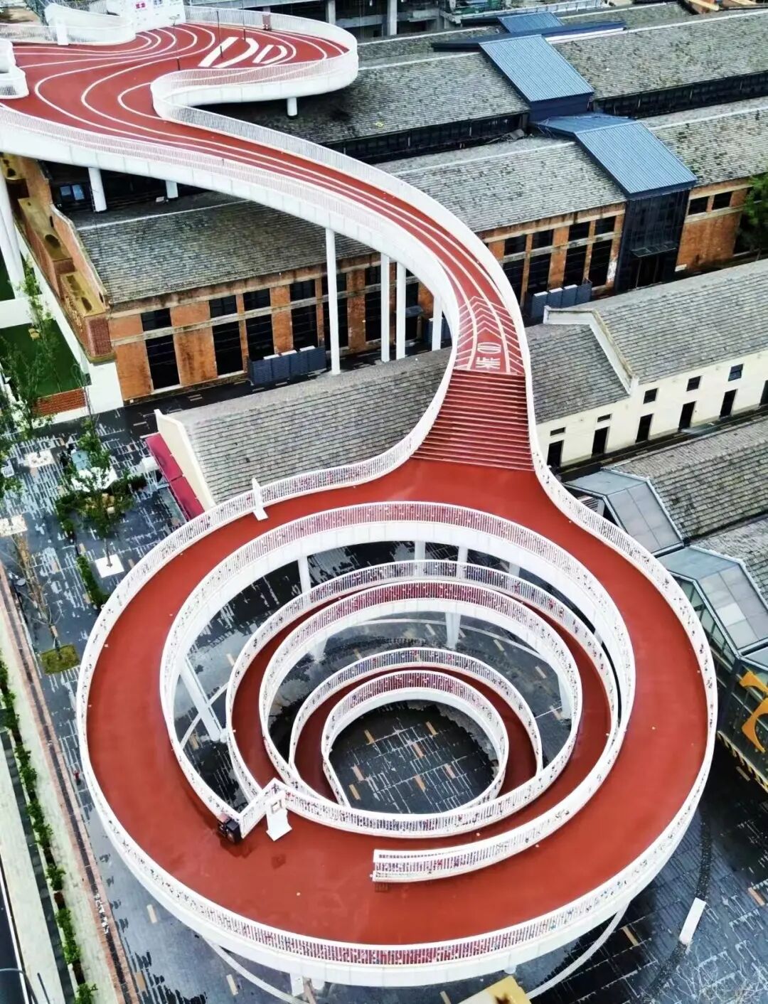 拾级而上,光影在栏杆间跳跃,每一步都似穿梭于旧时光与新潮艺术之间,是探索文创园区不可错过的沉浸式体验。