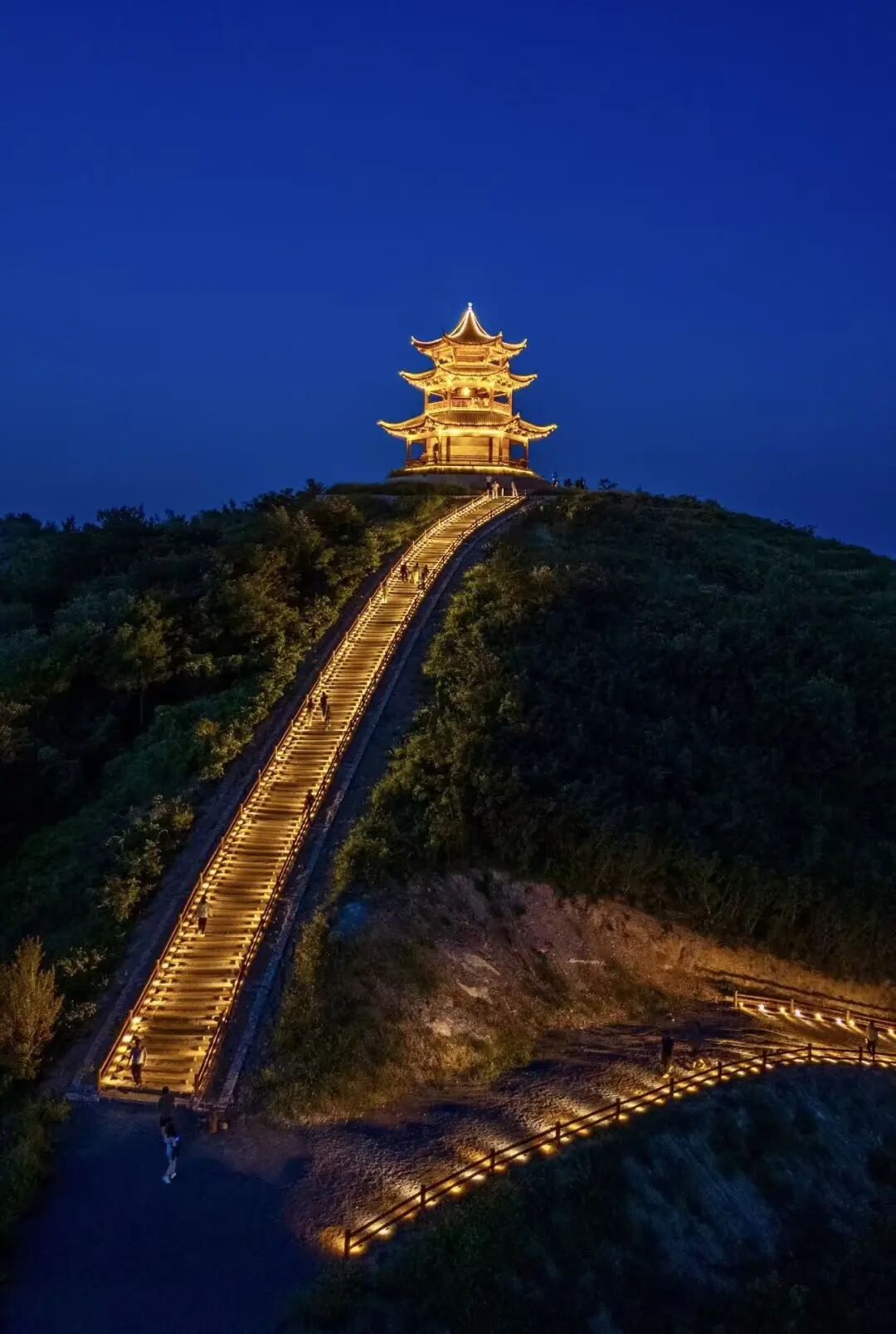 在合肥庐江万山镇闸山村的静谧山巅,有一处被称为“合肥版云顶天宫”的秘境——半山亭。无需远行,只需等夜幕降临、灯光亮起,就能看到它的“盛世容颜”。