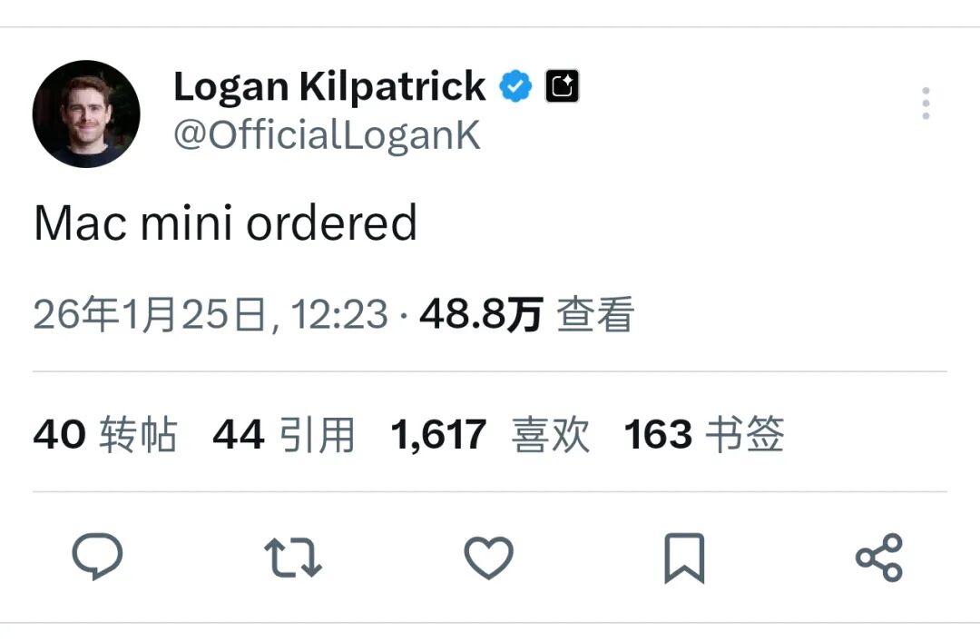 Clawdbot确实算得上现象级产品。不少友商大佬纷纷推荐,甚至为它专门购置Mac mini,其中不乏Google AI Studio的产品负责人。这款产品自爆火起就与Mac mini深度绑定,成了出圈组合。