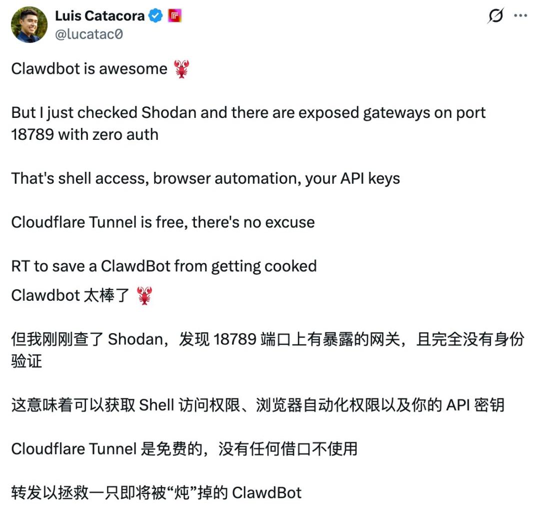 这也是为什么即使在尝鲜阶段,「专机部署」「最小权限」「敏感操作二次确认」「将账号密码设为一次性凭证」等建议在Clawdbot圈子里频繁出现。