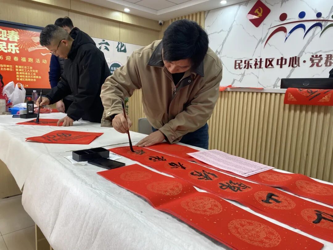 区书法家协会的书法家们现场挥毫,书写“福”字与春联作品,巧妙融合运动活力与传统年俗,寓意“马到功成,接福回家”。这一安排不仅让居民们以健康积极的方式迎接新春,还展现了社区蓬勃向上的精神风貌,进一步增强了社区的凝聚力。