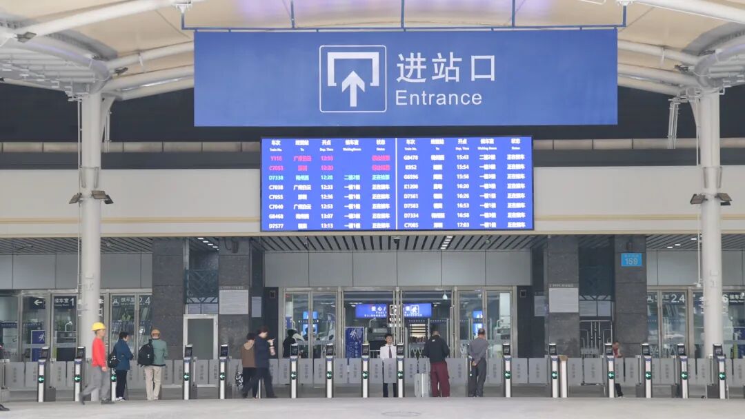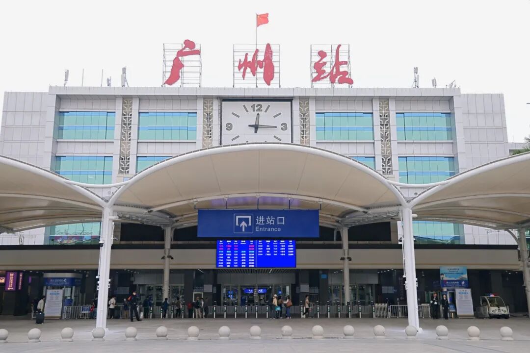 广州站同步完成提质升级:拆除站前栏杆,整合为1个进站口,旅客可从广场直通候车厅,进站效率大幅提升;出站口实现4个站台电动扶梯全覆盖,解决旅客携带大件行李的不便。