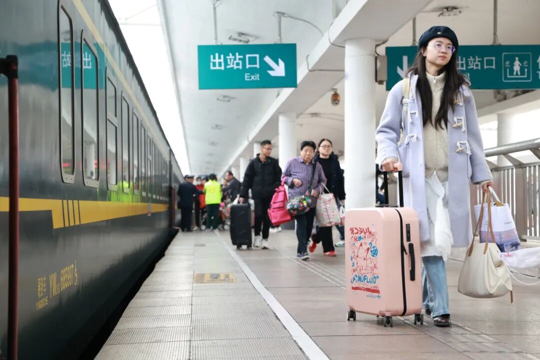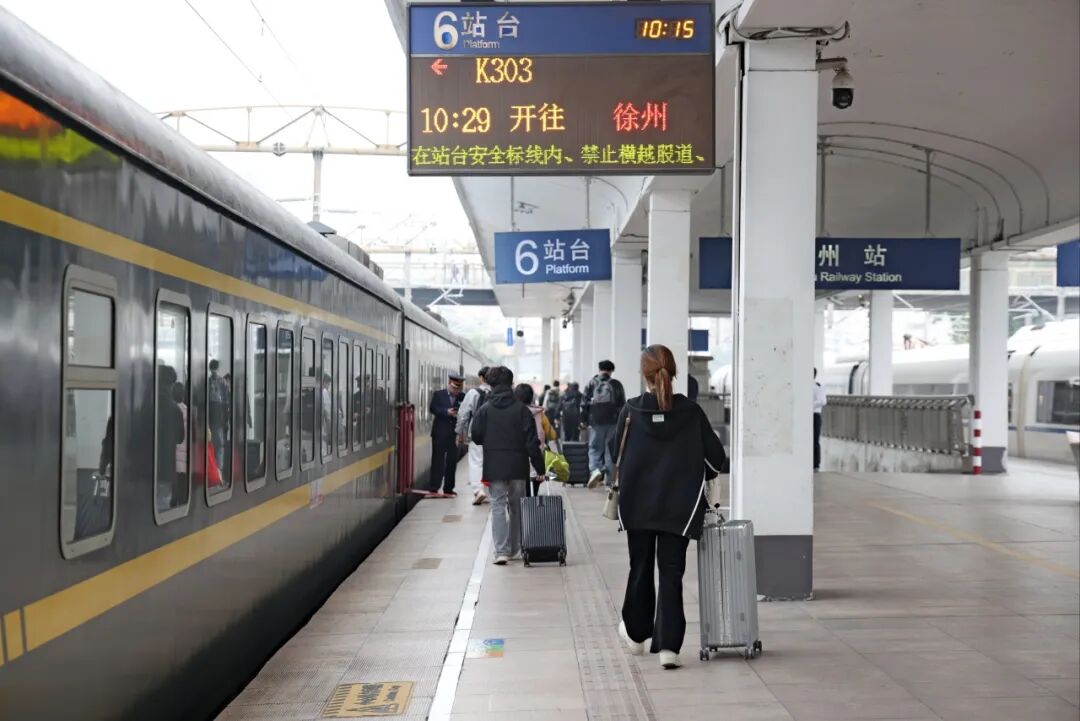 85岁的旅客石女士当天乘坐K303次列车返乡,她表示去年已坐过4趟该车次,感受到铁路服务逐年提升,虽然后续需转至白云站乘车,但仍觉便利。