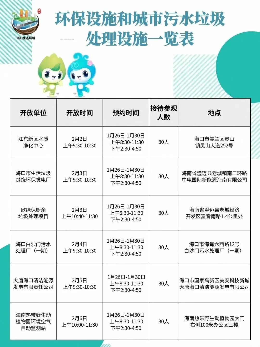 免费参观!海口2月环保设施开放活动开始预约