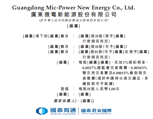 1月26日,港交所官网披露了广东微电新能源股份有限公司(简称“微电新能源”)提交的上市申请并获正式受理,独家保荐人为国泰海通。