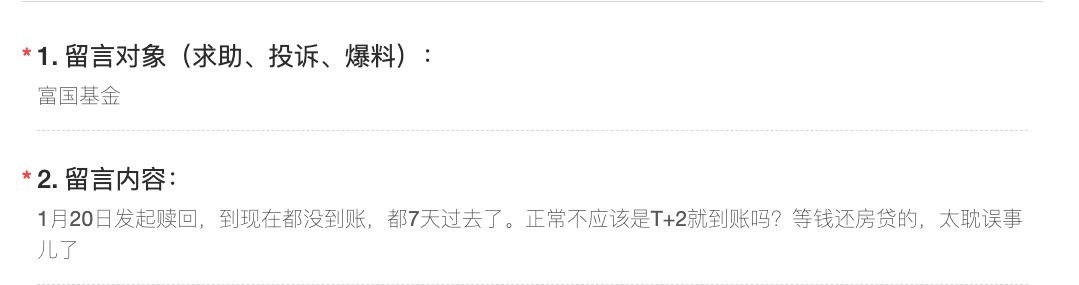 凤凰投诉消息 1月27日,有网友向凤凰投诉反映,在富国基金申请赎回后7天资金仍未到账,导致自己还房贷的计划被打乱。