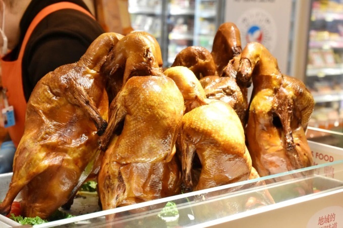 针对社区零售味觉内卷,双楠店食品超市以“本土根脉+全球视野”打造风味矩阵:一方面挖掘地域名物与非遗技艺,引入百年老卤品牌盘飧食、乐山甜皮鸭、广汉非遗缠丝兔等全国特色风味,搭配现卤海鲜、AI机器人现炒川菜,强化本土烟火气;另一方面延续日式现做优势,日式炸品现场裹粉炸制还原地道风味,引入洋风比萨现场发酵制作,且洋风商品保持30%更新率,持续带来新鲜感。