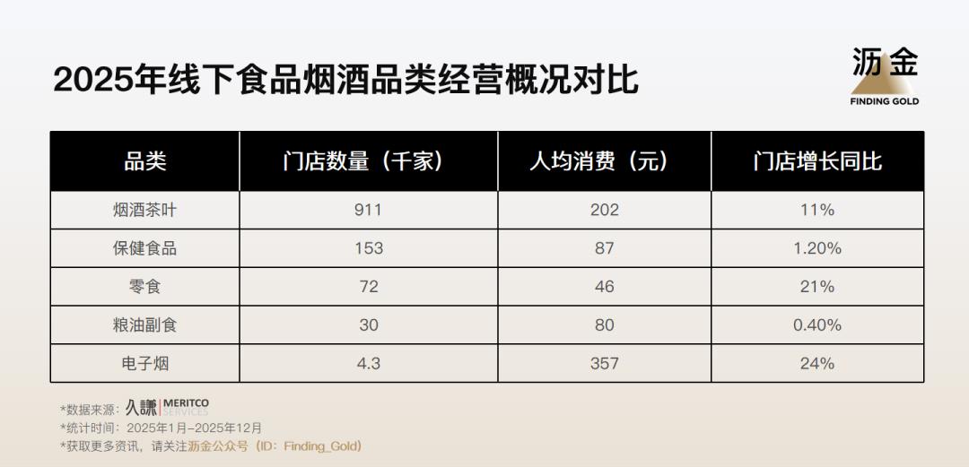 电子烟与零食是增长最快的两个方向。前者满足成年人的即时放松需求,后者则契合消费者(尤其是年轻人)对“即时快乐”与口味创新的追求,零食量贩店凭借海量SKU与极致性价比成为新兴渠道。