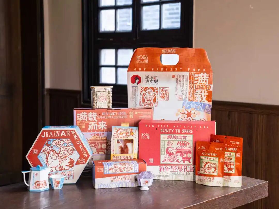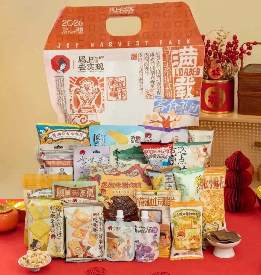 茶颜悦色的“马上去实现”马年限定系列更让年轻人种草,以传统“甲马”文化为灵感,推出坚果礼盒、零食礼包,还有茶具、香氛等周边;喜茶的“今日有喜礼盒”带马年刮刮卡,多了开盲盒的趣味;阿嬷手作的广西风味辣酱、裕莲茶楼的“葱香牛轧万得福”也成小众爆款。