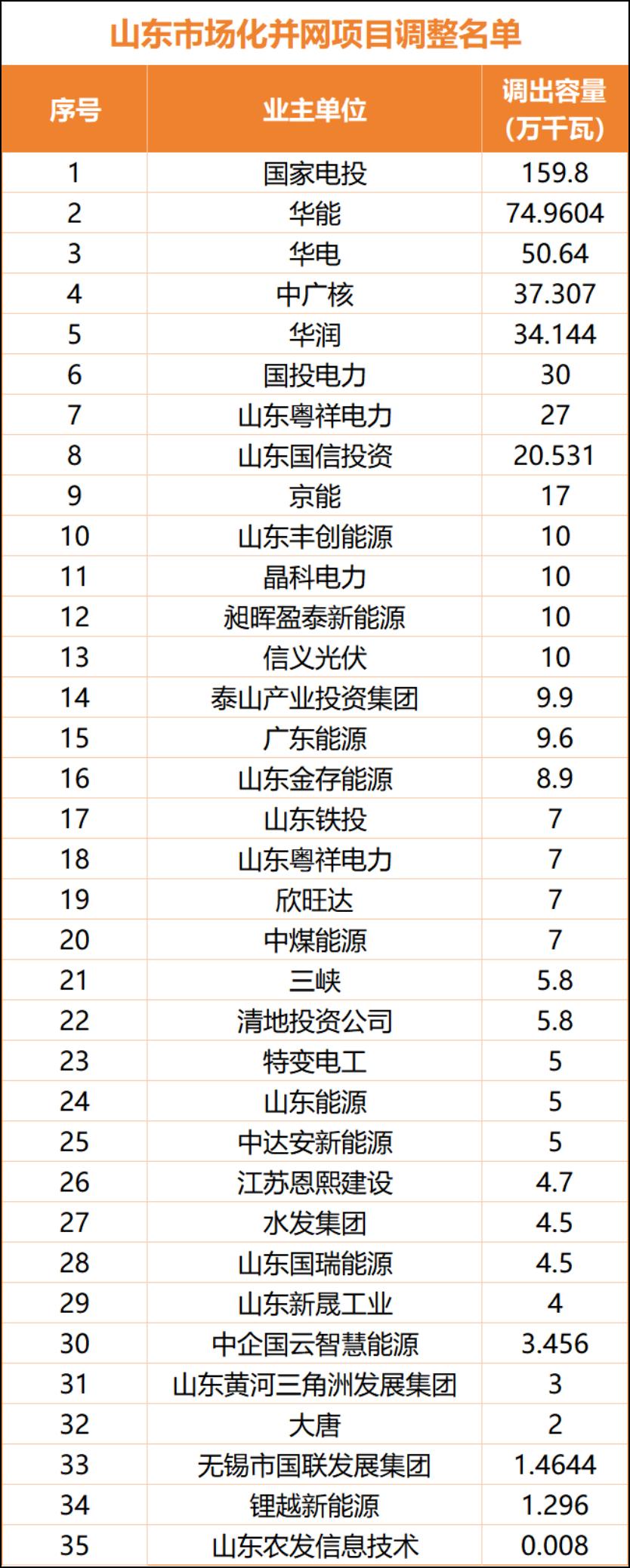 华夏能源网(公众号hxny3060)消息,山东省能源局日前发布《关于调整集中式光伏发电并网项目名单的通知》,将63个总容量583.9万千瓦、未能按期建成并网的光伏项目移出市场化并网名单。此消息之所以备受瞩目,是因为这些项目的建设主体涉及35家电力央国企。