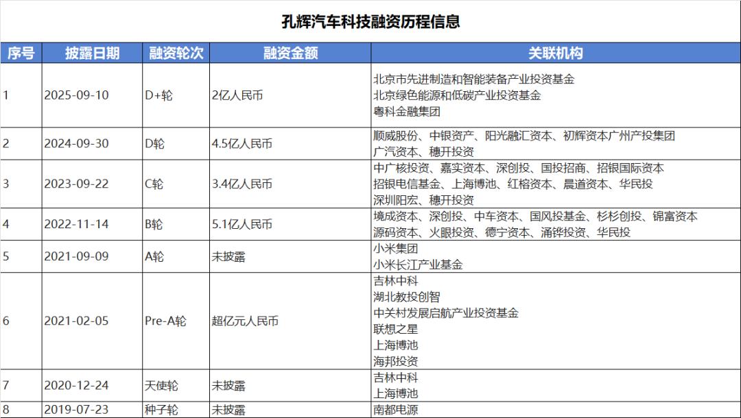 天眼查信息显示,自成立以来,孔辉科技已完成8轮融资,源码资本、中银资产、国投招商、中车资本、联想之星、广汽资本、深创投、小米等机构均为其投资方。
