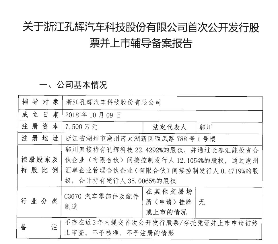 近日,浙江孔辉汽车科技股份有限公司(简称“孔辉科技”)已在浙江证监局完成IPO辅导备案登记,辅导机构为中信建投证券。这家由中国工程院院士郭孔辉父子及学生组成核心团队的创业公司,正朝着资本市场发起冲击。