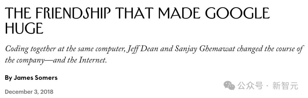 《纽约客》2018年发表的有关Jeff Dean与Sanjay Ghemawat的人物报道《The Friendship That Made Google Huge》(缔造谷歌的友谊)