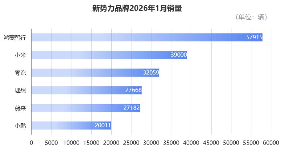 鸿蒙智行全系交付57915辆,同比增长65.6%,稳坐新势力第一梯队。