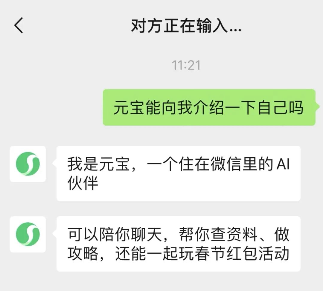 此次活动深度结合腾讯的社交优势,用户可将红包链接分享至微信、QQ好友,借助春节高频社交场景激活AI助手需求。不少用户为“薅羊毛”下载元宝,其在微信生态的布局还包括公众号评论区问答入口和“元宝”微信号,用户可直接@元宝提问或添加好友聊天,模拟真人对话体验。