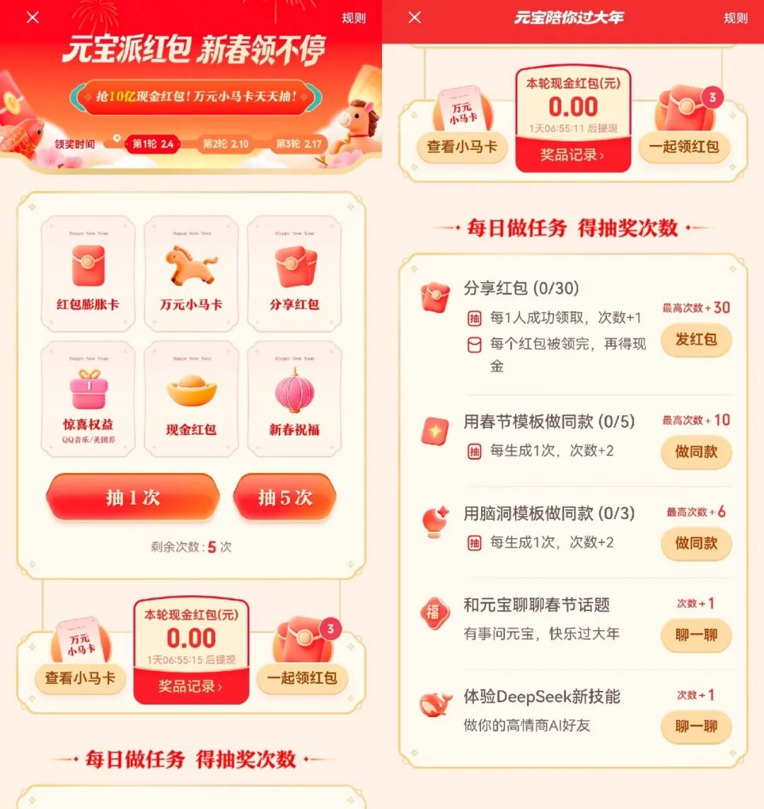 元宝的路径更为直接,采用“红包+社交”打法,契合腾讯过往的增长经验。