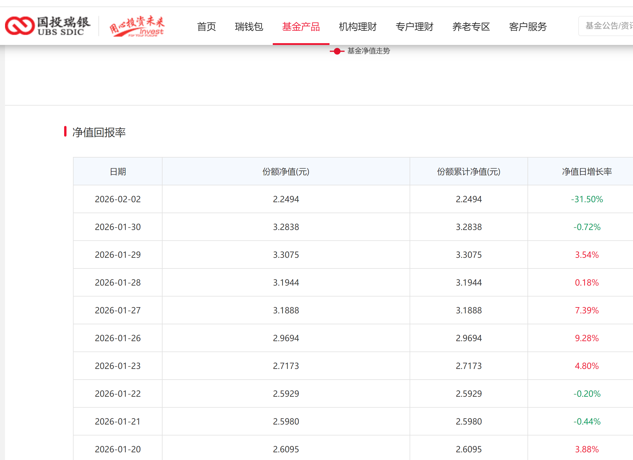 国投瑞银白银LOF单日净值大跌31.5% 刷新公募基金单日跌幅纪录