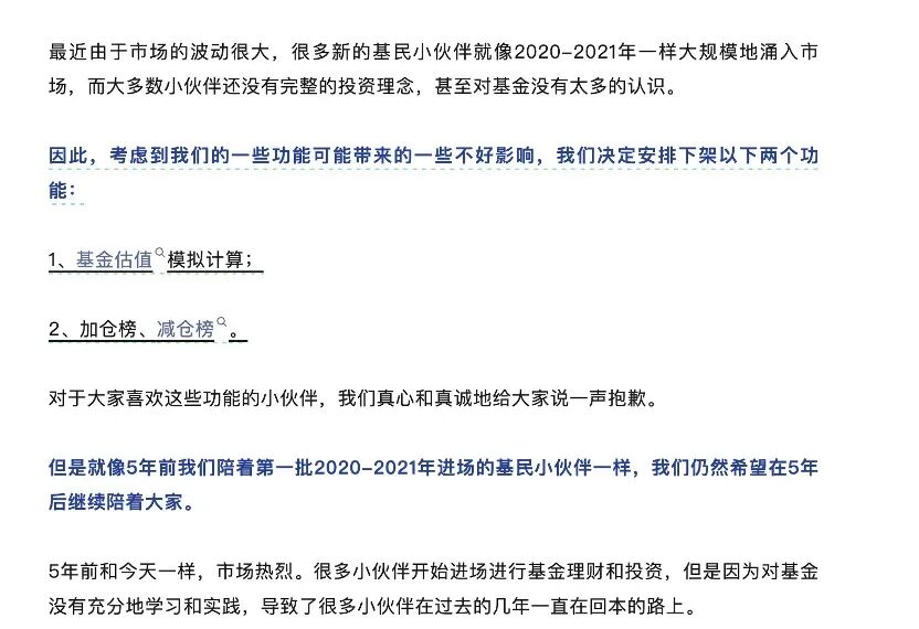 行业响应迅速,1月30日已有平台下线加仓榜、减仓榜,周末赶工下线实时估值。代销机构人士表示,这些功能加剧短期波动,不利于引导长期投资,还可能摊薄基金收益、引发投诉。