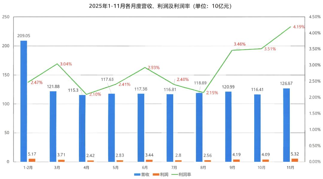 国家统计局数据显示,2025年11月造纸业营收同比下降2.7%,累计利润仍在下滑,但单月利润率却飙升至4.19%,创下年内新高。这一看似矛盾的现象,实则是行业十年变革的缩影。