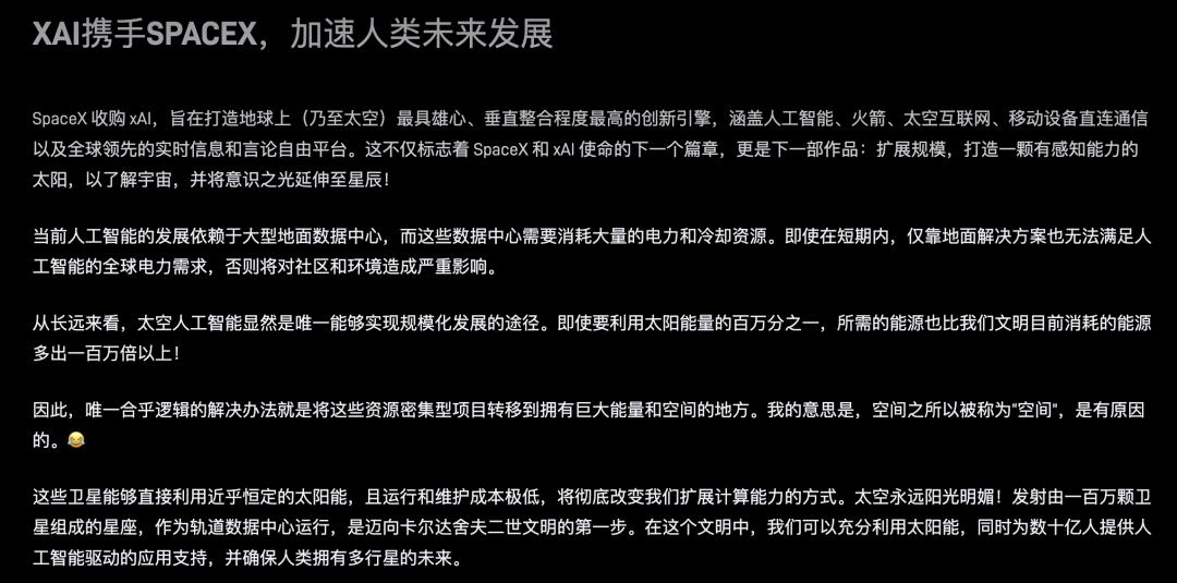 SpaceX与xAI的合并早有迹象,其开端可追溯至马斯克那条关于向太空发射数据中心的推文。