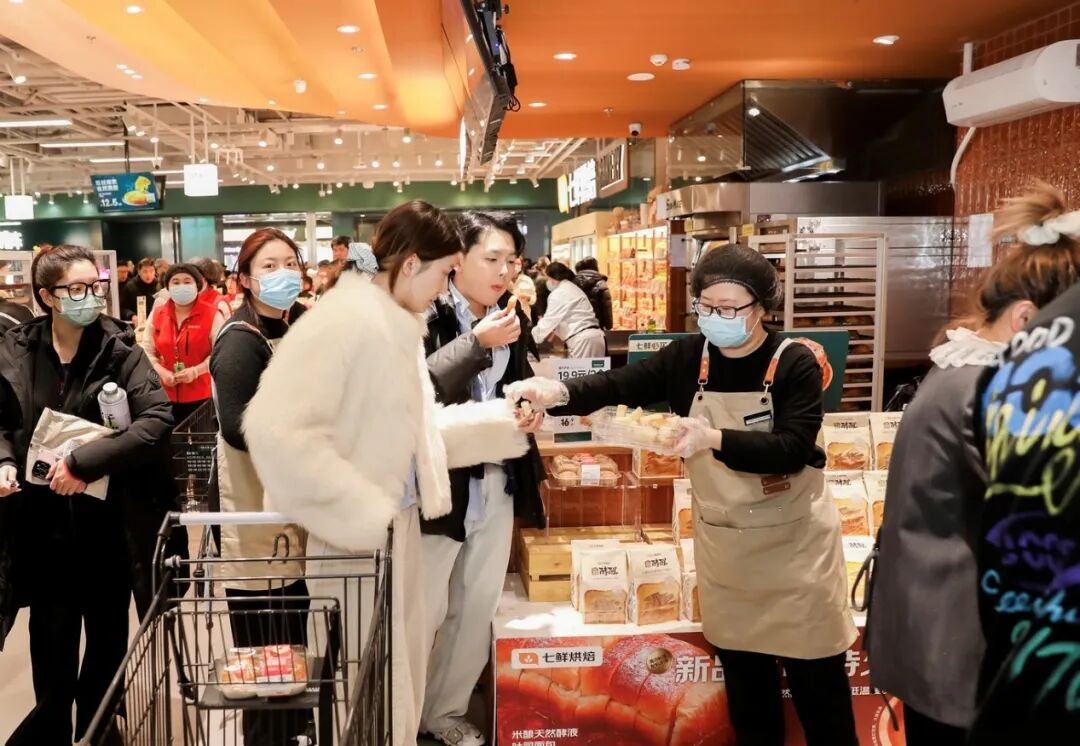 1月30日,京东七鲜北京荟聚店与上海浦东世纪汇店两家新店同步开业。开业三天,北京店共接待顾客近15万人次,不少商品当日就被抢购一空。