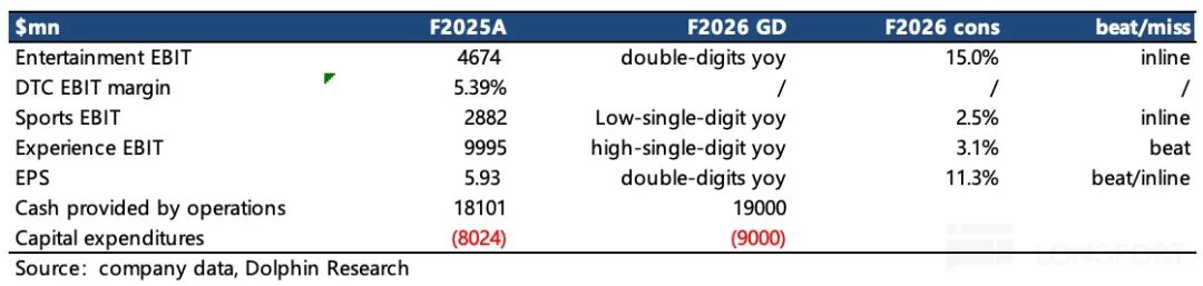 2. 业绩指引平淡无奇:管理层对第二季度的业绩指引与市场预期基本一致,但公司提及主题公园业务面临压力,国际游客减少对美国本土园区人流量产生了影响。而对于2026财年的整体指引,似乎未做明显调整。