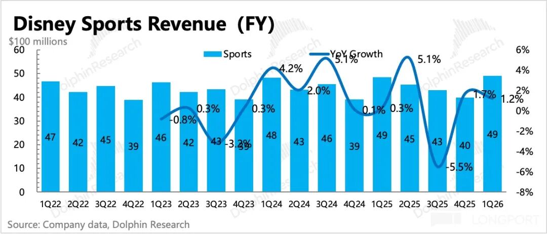 (4)迪士尼的新重点【体育】业务可能是一条新的成长路线。尽管ESPN在迪士尼内部运营多年,但体育内容及相关产业正受到越来越多流媒体公司关注,例如奈飞也多次提及对体育内容的重视并加大投入。