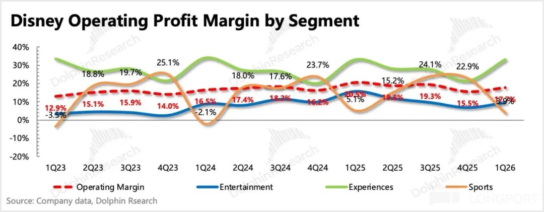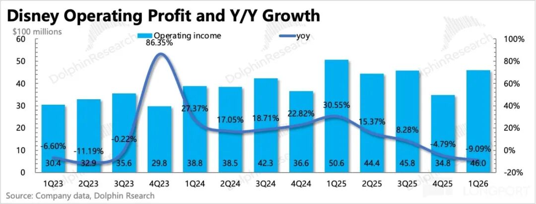 原流媒体业务已重新整合为SVOD业务,本季度该业务同比增长11%。但考虑到去年10月迪士尼曾进行一波幅度不小的涨价(本土涨价10%、国际涨价20%),因此实际由用户规模扩张带来的增长驱动可能相对有限。