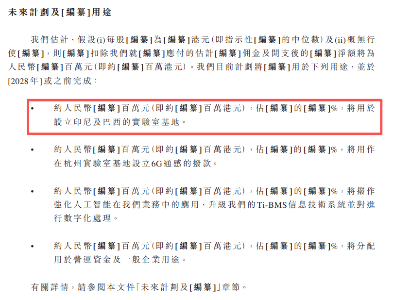 此次赴港上市,钛和检测计划将募集到的资金用于印尼及巴西实验室的建设、杭州6G通感实验室的设立、AI技术的应用以及营运资金的补充。