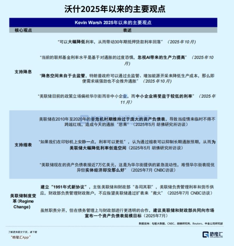 起初市场认为沃什是“鹰派”,会通过缩表收紧流动性,但实际他可能是与特朗普思路契合的“务实派”,核心主张为“降息+缩表”。